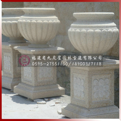 埃及米黃花缽-房地產(chǎn)樓盤小區(qū)石雕案例高清圖