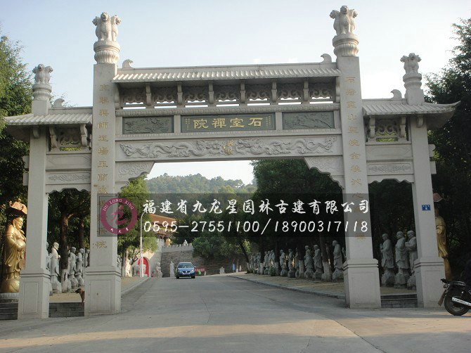 石雕牌坊即石頭修建的牌坊,是一種裝飾建筑物,也是雕刻藝術的一種。常見于古代陵園,如北京明代陵墓外面的大紅門前,有石牌坊一座,整個牌坊為五間六柱十一樓,結構勻稱和諧,造型美觀大方?,F代石牌坊常用于村鎮入口,寺廟景區入口等。主要作為標志性的裝飾建筑物,在設計上也沒有古建石雕牌坊那么講究。