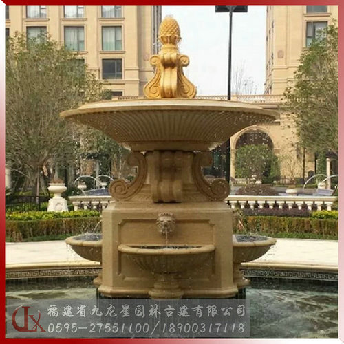 石雕噴泉水景具有美化環境、烘托活躍 氣氛的功能,能更好體現其美感和自然特性,起到點綴、襯托、渲染等裝飾效果。石雕水景噴泉往往是人們視覺的焦點,是構成一定空間環境的景觀中心。
