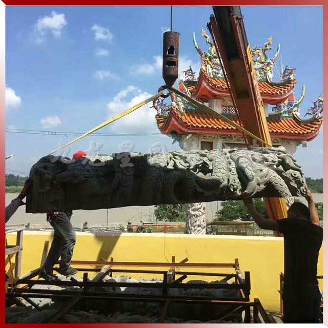 九龍星園林古建寺廟青石龍柱安裝現場