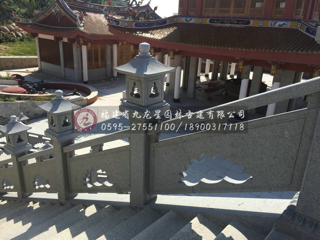 寺廟石欄桿是中國傳統的藝術,寺廟欄桿預示著真誠的信仰,材質一般選用石材。中國古代寺廟石雕欄桿可以影響人的觀念,因此建造寺廟欄桿首選石材欄桿,石材具有經久不衰,不易風化,耐腐蝕,保存時間長等特點。