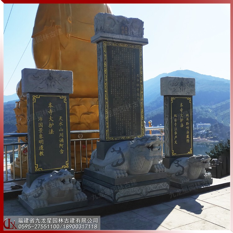 福建省九龍星園林古建有限公司石雕產品內容涵蓋宮觀寺廟、塔亭柱欄、龍獅虎獸、神佛造像、大型城市景觀雕塑等石雕精品,力求于“方寸之間”勾描中國南派雕刻藝術精魂的傳統工藝、傳統題材、傳統手法,展示惠安雕刻出神入化的精湛技藝和亙古長明的文化傳承。