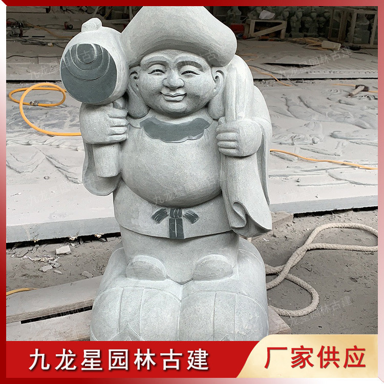 大黑天神的形態,多數是面帶笑容,右手拿打金錘(賜財福),左手則執著米袋(代表豐衣足食)。
