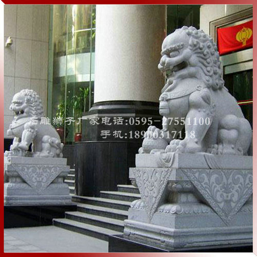 在眾多的名勝古跡區(qū),在高大的辦公樓前,在豪華的住宅區(qū)前,我們常常看見一對或坐或立的石獅子雕塑,雄踞大門門前,威風(fēng)凜凜,有的把守路橋要囗,氣勢宏偉。