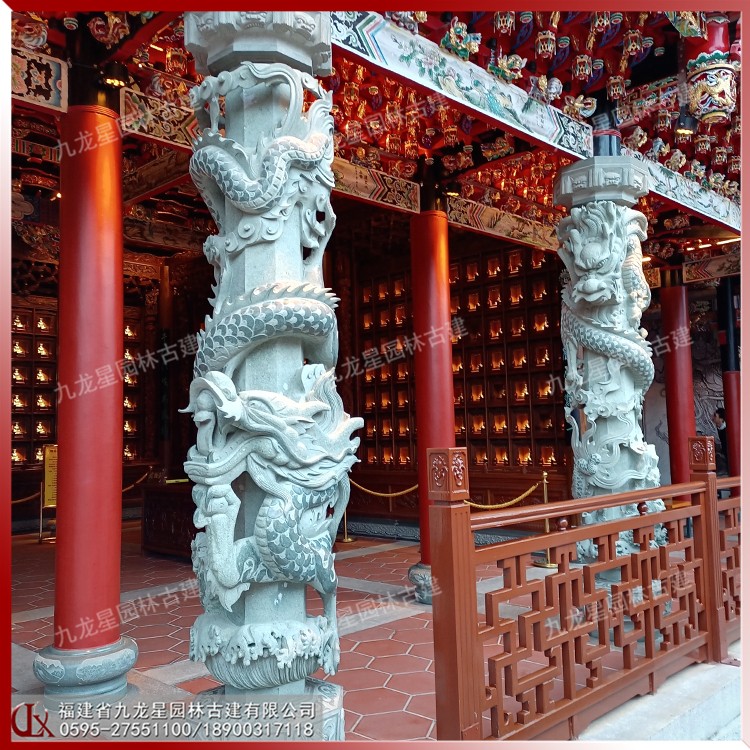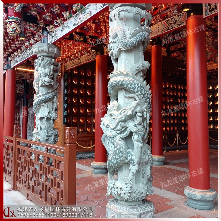 除了用料、工藝、大小的因素影響外,客戶在預算石雕龍柱價格的時候,還要考慮龍柱的包裝、運輸方式、安裝難度等其他相關方面的因素。石雕龍柱價格多少錢詳細的信息可以咨詢惠安石雕龍柱廠家九龍星園林古建。