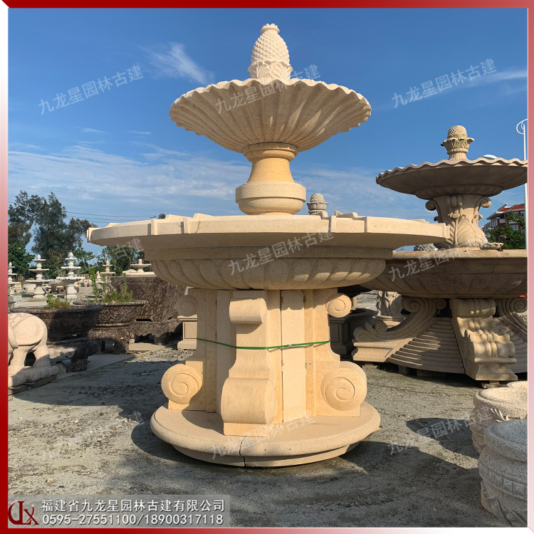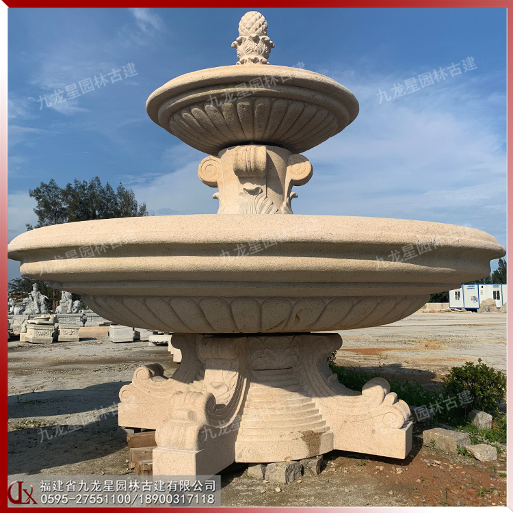 黃金麻石雕水缽圖片 小區別墅裝飾水景