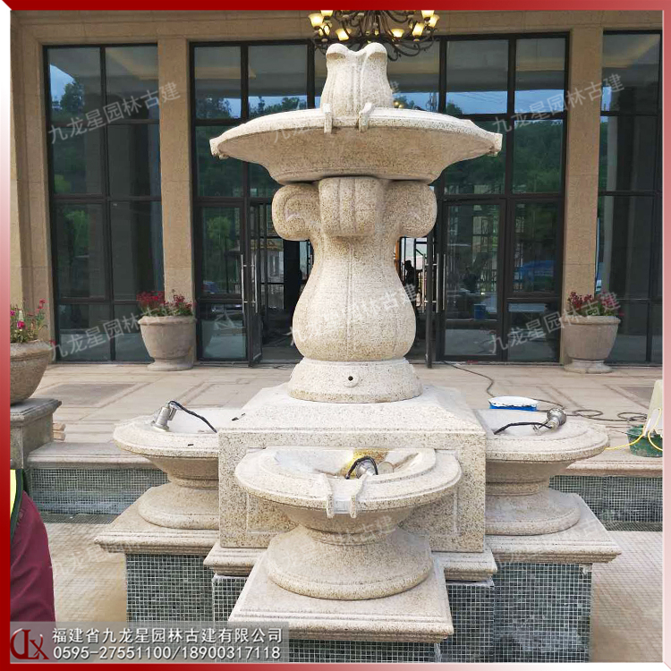 黃銹石石雕噴泉安裝效果 惠安石雕噴泉 廠家價格
