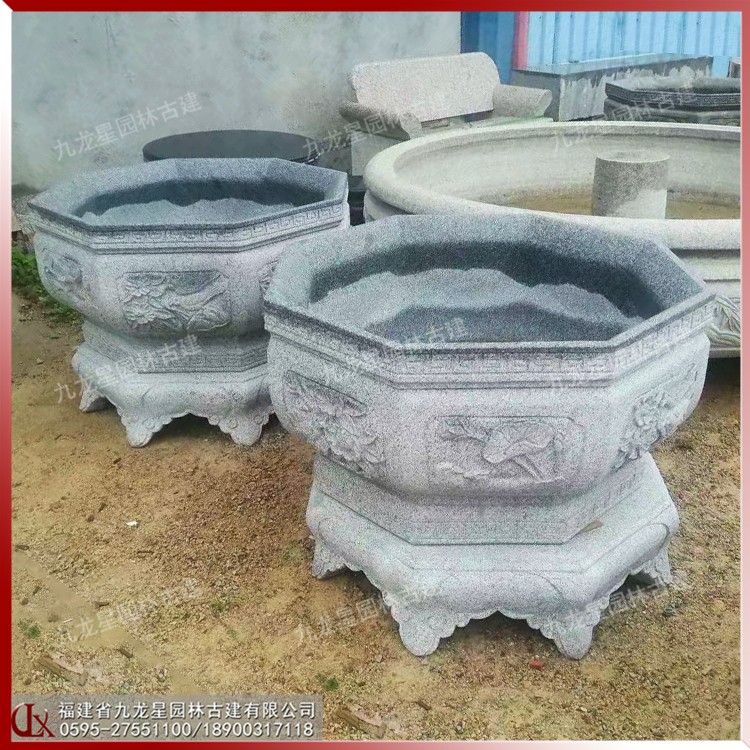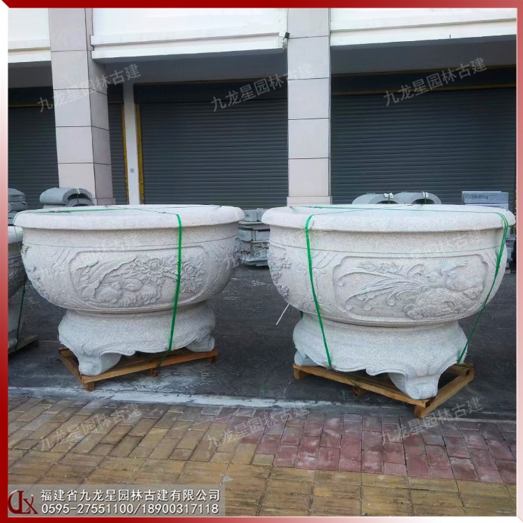 中式石材花缽雕塑 庭院石雕花缽樣式 精致雕花