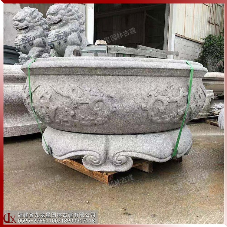 石雕做成的中式石材花缽古樸大方,古香古色,非常適合中式建筑的搭配展示,特別是這種具有現(xiàn)代特色的經(jīng)典傳承文化的創(chuàng)新之作,更是讓人感到耳目一新,并且庭院中擺放這樣的精致雕刻的花缽,在一定程度上提升了整個(gè)建筑的檔次。