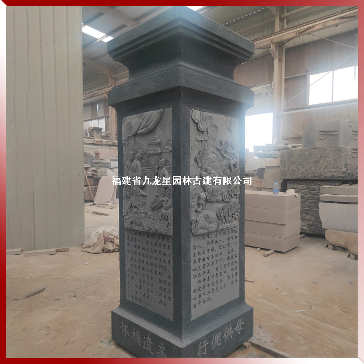 石雕柱子雕刻二十四孝浮雕人物 廣場景觀石雕文化柱