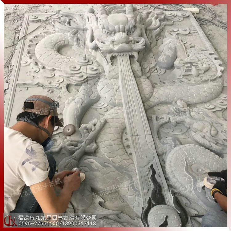 大型浮雕石雕九龍壁制作