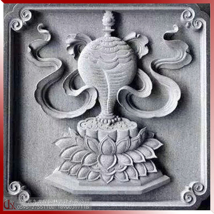 佛教八吉祥 石雕浮雕佛八寶圖案